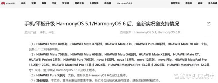 已升级至HarmonyOS 5.1.0及以上版本的设备中,Mate 70系列、Mate 60系列、Pura 70系列以及多款MatePad Pro平板电脑也已获得实况窗功能支持。